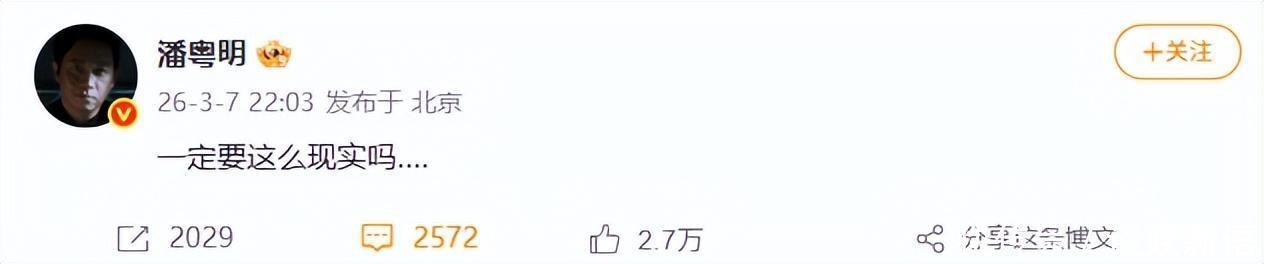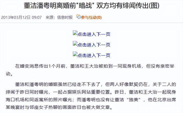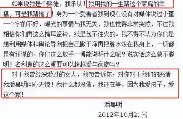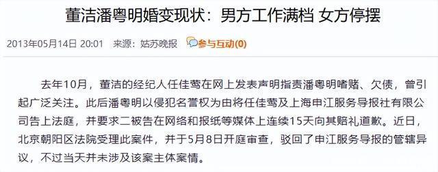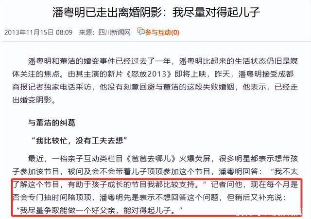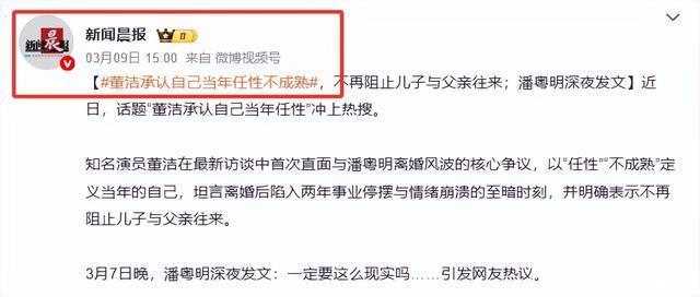 编辑|娱瓜酱 提到潘粤明你最先会想到的是什么? 《白夜追凶》里的双胞胎,还是《逆流而上的你》里的杨光, 亦或是和其有过五年婚姻的董洁。 从最开始被外界公认的“金童玉女”到“全网互撕”。 他们之间的故事似乎永远能引起网友的讨论。 近日,一则热搜再次将两人关联在一起,而董洁的过往也被再次扒出! 早年,潘粤明曾在节目中表示“娶了一个好老婆是他做的最对的一件事”。 二十多年前,他们因为共同拍戏相识。 董洁刚凭着《金粉世家》里的冷清秋出圈,而潘粤明则是温润内敛的实力派小生。 这样的两人,在戏里是十分默契搭档,而在戏外他们也互生好感。 而他们的恋情也没有太多的轰轰烈烈,更多的则是一些小细节。 董洁曾在访谈中表示,那时候两人有发不完的短信。 但奈何当时候的手机内存并不大,而他们又想保存这些信息。 无奈两人只能通过换手机的方式,最后甚至换了高达5、6部。 从这一小细节就能看出两人当时的甜蜜。 因此没人会想到,这份被所有人看好的感情,最后会闹的这么难看。 2012年10月,董洁工作室突然承认两人已经分手的消息。 更令人意外的是,声明里处处控诉着控诉潘粤明在婚内存在不好的行为。 这份声明一出来,很快便引起了网友们的关注和讨论。 所有人都不敢相信,那个看起来温润如玉的潘粤明,会是这样的人。 但面对外界的质疑,潘粤明则十分的冷静。 并强调对于感情他问心无愧,他爱孩子,更爱这个家。 同年12月底,潘粤明将董洁的经纪人告上法庭。 而这场官司最终也以潘粤明胜诉,董洁方被判定造谣,需要公开赔礼道歉结束。 虽然最后的结果是好的,但“婚变事件”也不免对两人造成了一定的影响。 虽说一段好的婚姻会给人带来成长,但想必一段不太完美的婚姻同样也是如此。 此前潘粤明曾在接受采访的时候表示,自己依然相信爱情。 甚至早在2013年,他就表示自己已走出了离婚带来的阴影。 而在面对记者的提问时,也只表示尽量争取做一个好父亲,能对得起儿子。 其实不止潘粤明,董洁也曾在采访中表达对可能会开启一段新感情的态度。 她表示,如果会遇到新的感情自己不会很谨慎,但同样也不会义无反顾。 对于当时的她来说,不会有太多期待,但也同样不会恐惧。 不仅如此,她还曾在节目中表示,如果有新感情的话可能会有第二个孩子。 不过,虽然两人都表示都新感情的出现并不排斥。 但事实却是直到现在两人在感情上也没有什么新的进展。 反而在近日,关于两人的话题再次登上热搜。 本月8号,董洁再次提起了当年的离婚事件。 而这也是她和潘粤明离婚十几年来第一次谈起自己的心路历程。 在此次访谈中,董洁承认自己当年的任性和不成熟。 并坦白离婚事件后的几年时间里,事业也出现了停摆。 而当时的她在出席一场活动时,曾现场落泪并表示“不知道说什么,很抱歉”。 如今董洁直面自己的前段婚姻,也让不少网友感慨。 但同时这件事也让潘粤明受到了不小的关注。 不过,在董洁此次访谈之前,潘粤明在微博上发布的一条动态就已经引起了关注。 甚至这条动态,还让不少网友发出“潘粤明这是不留情面了”的感慨。 本月7号,他突然毫无征兆地发文“一定要这么现实吗....” 虽然这条动态最初也只是被网友们看作是他个人的情绪表达。 但随着网友们的讨论,这条没有指向性的动态也开始被网友们和董洁关联起来。 有网友猜测“这是对前妻的无语”。 也有人表示“懂的都懂,这话到底说给谁听”。 而网友会有这样的声音也并不意外,毕竟他们的离婚恩怨可谓是人尽皆知。 不过,对于这条微博潘粤明方暂时未作出任何回应。 但或许就像部分网友所说的那样,这只是一条正常的感慨动态。 其实早在2023年的时候,董洁在谈起和潘粤明的婚姻时,就曾表示过自己是挺任性的一个人。 不仅如此,她还补充道“那10年,除了家人以外,什么都一下子散了”。 而她的朋友甘露也透露,当时董洁的状态非常差。 但尽管如此她也从来没有埋怨过谁,只说家人给了她很多支持。 可对此网友们却并不买账,毕竟她的一系列操作外界都看得一清二楚。 2013年3月,有狗仔曝出董洁和王大治的亲密视频。 而这则爆料则早于离婚声明,这也让董洁被指婚内出轨。 对此有人扒出2012年两人在微博上的动态以及互动。 比如王大治曾发微博:“我爱海的神秘,怕海的莫测,对你亦如此……” 而当时的他正和董洁合作,由于她是大连姑娘,文中的“你”也被指是在说董洁。 而对此,董洁的宣传人员回应“是去年的内容,不知道谁放的消息”。 潘粤明的经纪人则在采访中直言“事实就在眼前,给了潘粤明一个公道”。 据悉,当时的董洁和潘粤明的离婚程序正在进行中。 此时其中一方被曝任何负面消息,都会对离婚官司产生影响。 不过,从最终的结果来看,两人的离婚程序不管怎么说也是正常进行下来了。 但离婚后,两人之间的纠葛似乎也仍旧没有结束。 自两人离婚后,儿子顶顶的抚养权归董洁所有,潘粤明仅保留探视权。 但在后来的一档节目上,在被问及和顶顶是否经常见面时,潘粤明摇头并泪洒现场。 再加上潘粤明连续数年为儿子发送庆生动态,但内容却仅是表情。 这系列行为,也被普遍解读为潘粤明曾长期探视顶顶受阻。 直到儿子14岁生日的时候,这样的情况才出现了明显的变化。 潘粤明不再是隔空祝福,而是首次公开晒